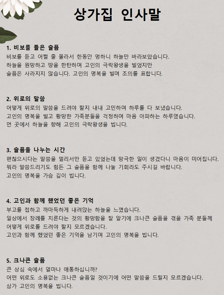 다양한 관계별 부고문자 예시 모음