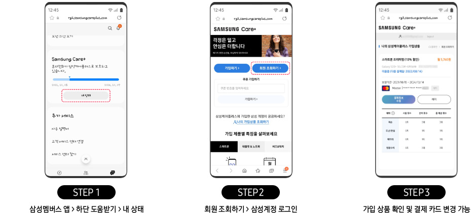 - 서비스 예약은 삼성케어플러스 홈페이지 또는 고객센터(1588-3366)를 통해 가능합니다.