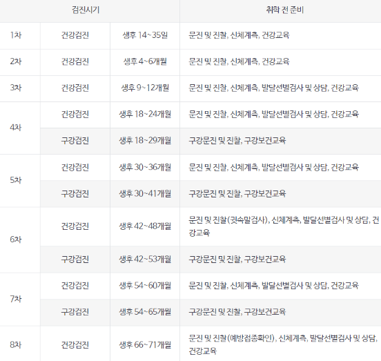 영유아건강검진 시기
