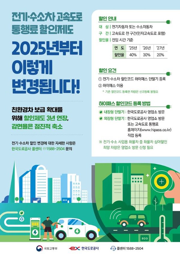 전기차와 수소차 등 친환경 차량은 통행료 50% 할인을 받을 수 있습니다. 또한 장애인 차량과 국가유공자 차량도 각각의 등록 절차를 거치면 상시 할인 혜택을 누릴 수 있습니다.