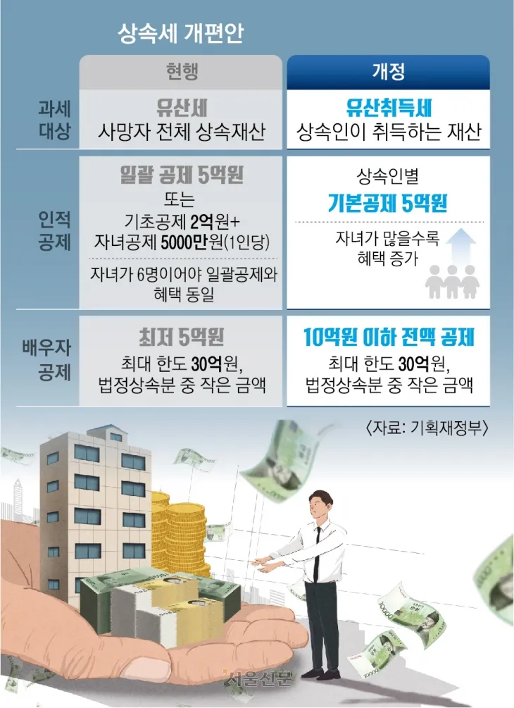 - 기초공제: 기본 5억 원 (모든 상속인에게 적용)