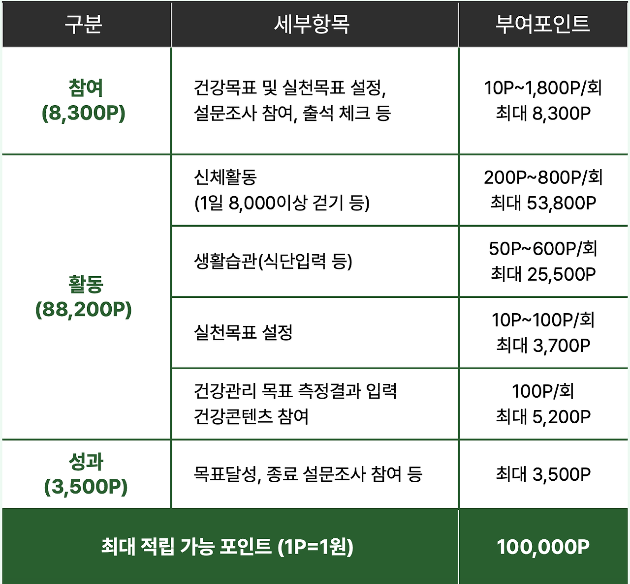 - 건강 커뮤니티 활동: 월 최대 5,000포인트