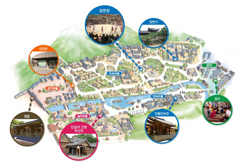 - 가족 놀이 코스: 전통 놀이마당 → 민속촌 아쿠아파크 → 전통 공연 관람